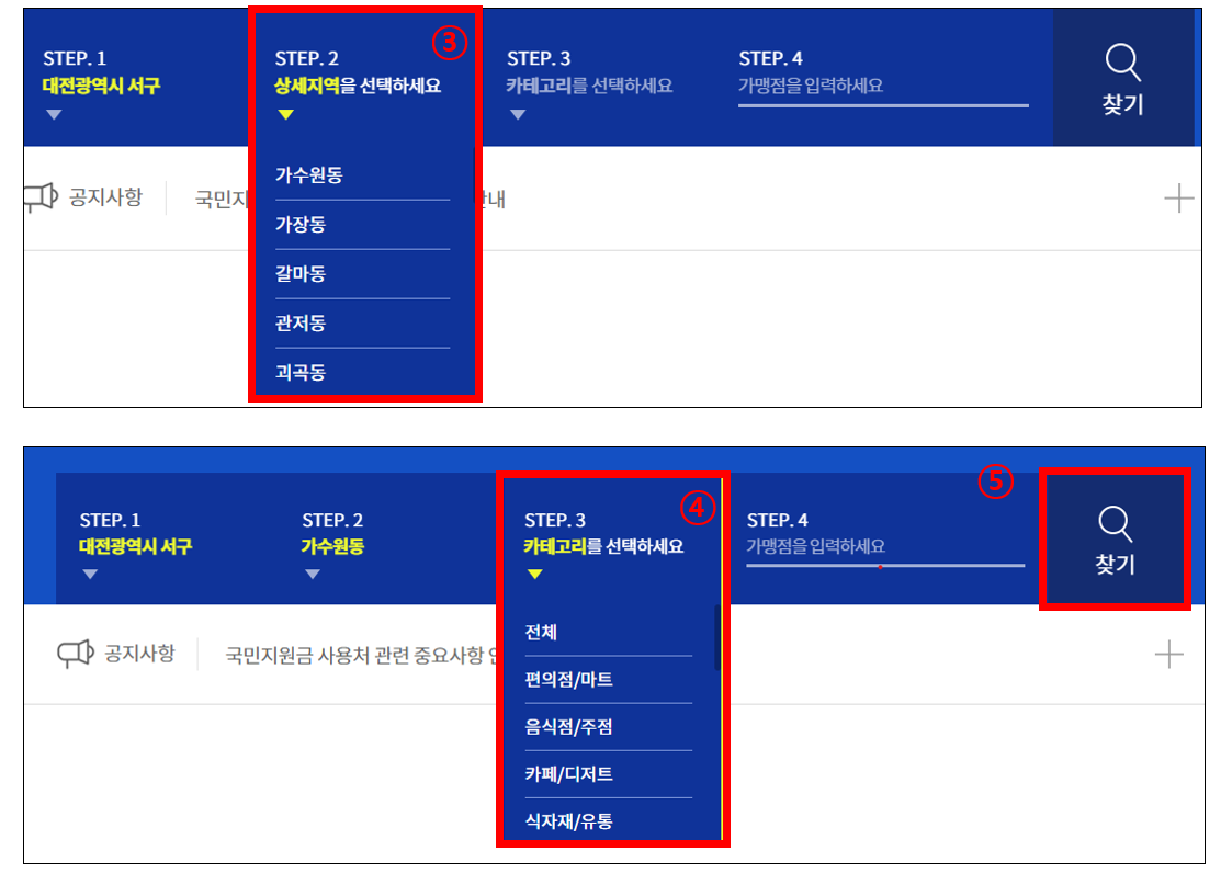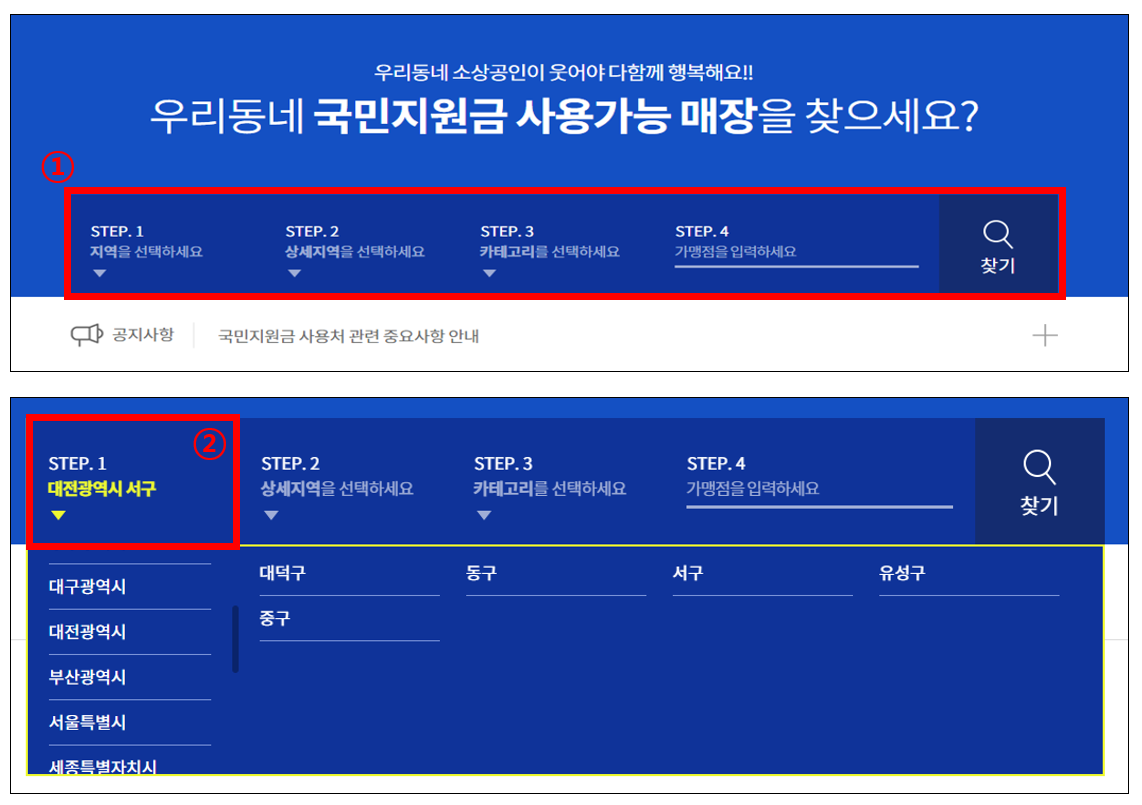 [재난지원금 사용처 검색하기]
