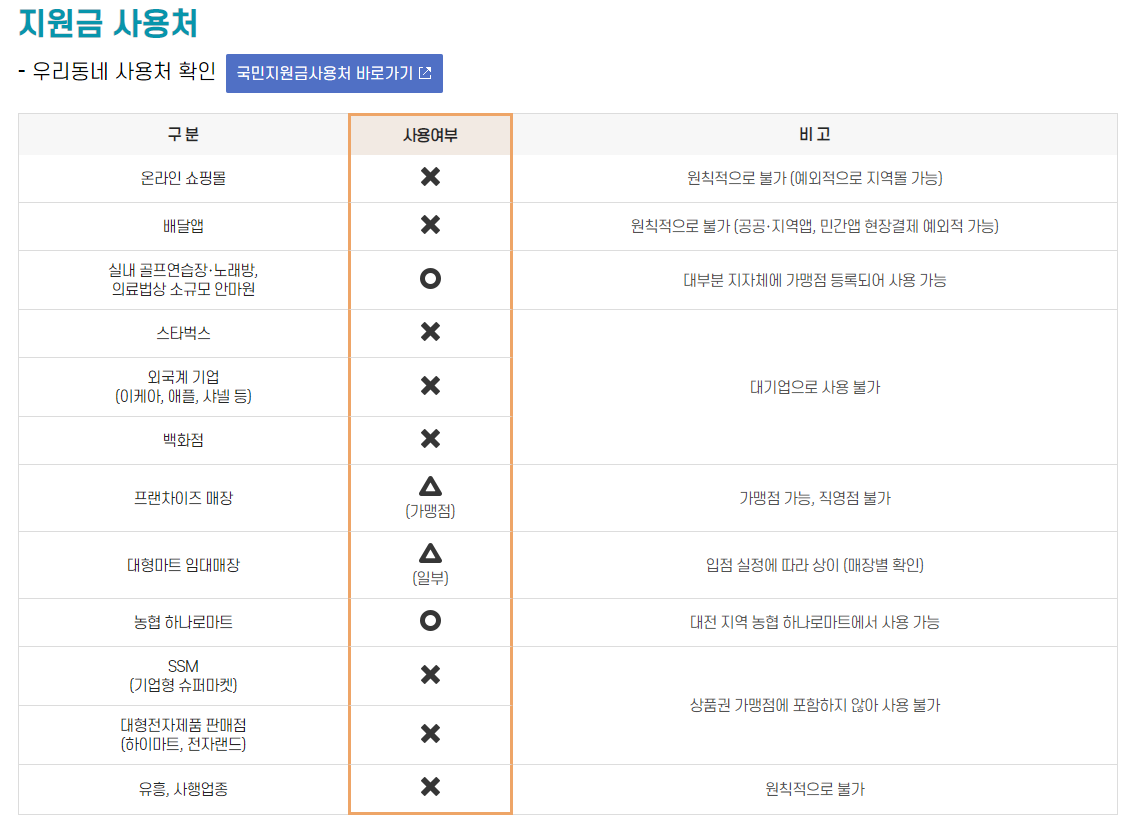 국민지원금 사용처 안내 - 메인